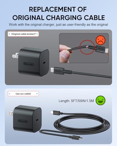 [2Pack] 60W Fast Charge-AC Adapter Replacement Cable for Switch 2, 1.5M/5FT Charging Cables for Nintendo Switch 2 Console, USB-C Cord for Switch Adapter, Accessories TypeC for Switch 2/Adapter/Console